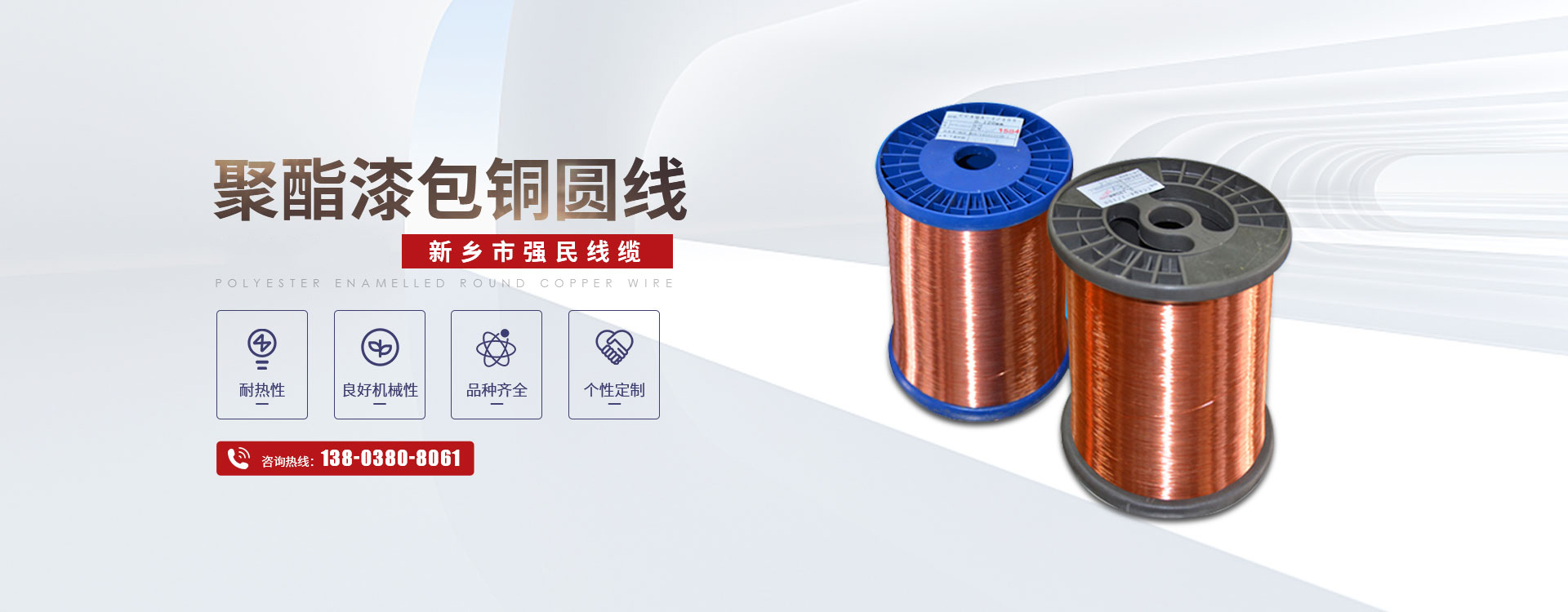 新鄉市強民線纜有限公司主要銷售各種規格高性能銅漆包線、鋁漆包線、紙包線和玻璃絲包線,年銷售能力3萬噸?! 」炯夹g力量雄厚,設備精良,所銷售的鋁漆包線與玻璃絲包線等產品性價比高,采用國內催化燃燒環保節能型漆包機、臺灣技術的雙變頻調速拉絲機等全套銷售漆包線設備和采用IEC標準對漆包線進行檢測的全套測試儀器,能滿足各類漆包線產品銷售需要。嚴格的質量控制體系,科學的產品檢測手段,使產品的質量得到更充分的保證,在同行業中享有很高的聲譽?! 」臼冀K把產品質量放在重要地位,制定了高于國際行業標準的公司內部質量執行標準,在過程中我們經歷了抓電阻、抓漆粒、抓耐壓、抓回彈、抓排線,在每一次活動中都得到了明顯的預期效果,銷售工藝不斷的完善,檢測力度的大幅度提高,保證了漆包線產品過硬的質量。企業通過了GB/T19001-2008-ISO9001:2008標準認證和ISO14001:2004環境管理體系認證。漆包線,不僅暢銷全國,還不遠萬里出口到非洲剛果等地。公司以“互惠互利、誠信發展”的服務宗旨,配以完善的售前售后服務,全力為用戶提供各種漆包線的制造和定制,贏得了合作企業的廣泛好評。  我公司本著**質量,不斷改進管理,滿足社會需求,保證客戶滿意的方針,開拓出一條規?;l展,**經營的新企業之路,熱忱歡迎海內外各界友人惠顧。